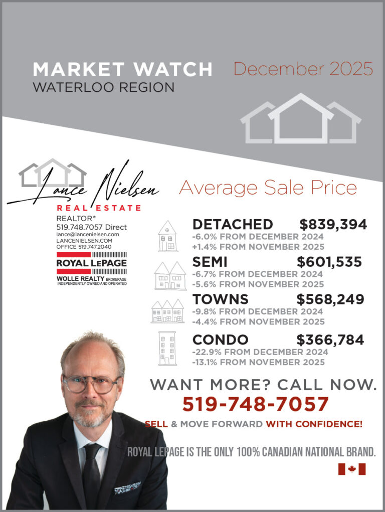 In 2025, the Waterloo Region real estate market shifted into a slower, balanced environment, marked by declining sales, rising inventory, and longer selling times. A total of 6,177 homes sold through MLS® in 2025, representing an 8.8% decrease from 2024.